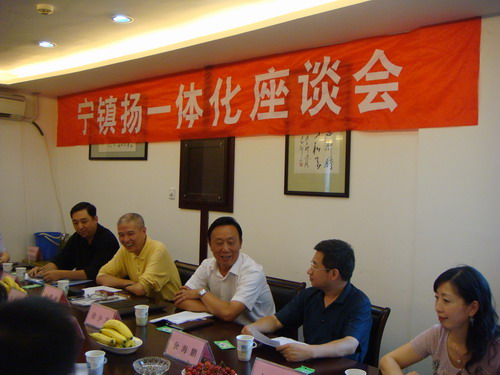7月16日,在扬州市发改委会议室,一场关于“宁镇扬一体化”的座谈热烈进行。参加者,一方面是九三学社扬州市委的领导以及专家,另一方面是扬州市发改委的部分领导同志,双方就“宁镇扬一体化”发表意见,并产生共鸣。而这次座谈会的牵线搭桥者正是中共扬州市委书记王燕文。